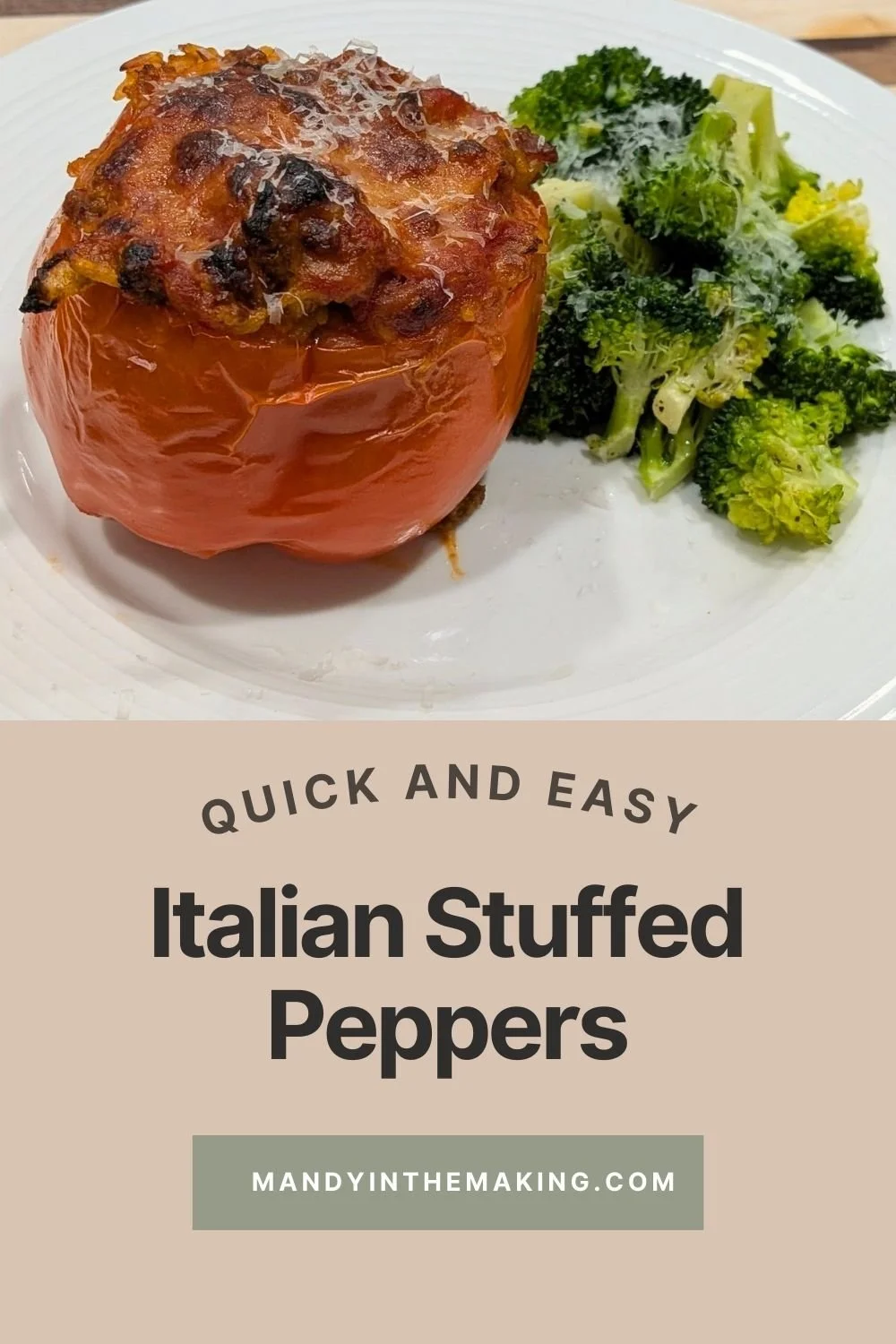 Often times I make stuffed peppers with a Tex-Mex flair, but these Italian stuffed peppers were delicious and were the perfect thing to make for just two people.